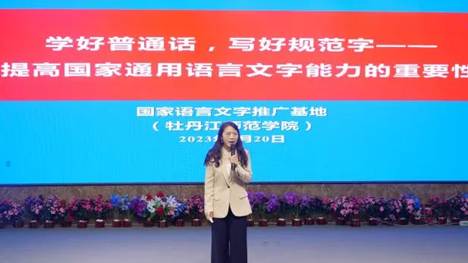活动中,金莉娜副教授以“说好普通话,写好规范汉字——谈学习国家通用语言文字的重要性”为主题,为海林市朝鲜族实验小学师生开展专题讲座。金老师回顾了中国共产党领导语言文字事业的百年历程,对国家大力推广普通话的重要内涵和时代意义作了深入解读,并深入浅出地讲解了我国方言区分布情况、语言文字的演变过程、如何正确发音、克服方言、避免语法错误等问题。金老师以成语为例,生动有趣地讲解了语言现象背后蕴含的文化内涵,引发了学生们强烈的反响和积极地发言。与会师生达成一个共识,语言文字工作关系国家和民族的发展和长远利益,有利于增进各民族各地区之间的交流,维护国家的统一,增强中华民族的凝聚力。