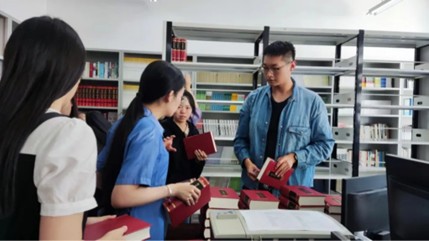 “第五十、五十一、五十二号古籍……”“第五十、五十一、五十二在这。"文科楼三楼不时传来这样的声音。活动过程中,志愿者们相互配合,大家穿梭在一排排书架中,了解古籍分类与版本,认真计算古籍的数量,将古籍摆放整齐,分批次有序地进行分工合作,提高了本次整理工作的效率。