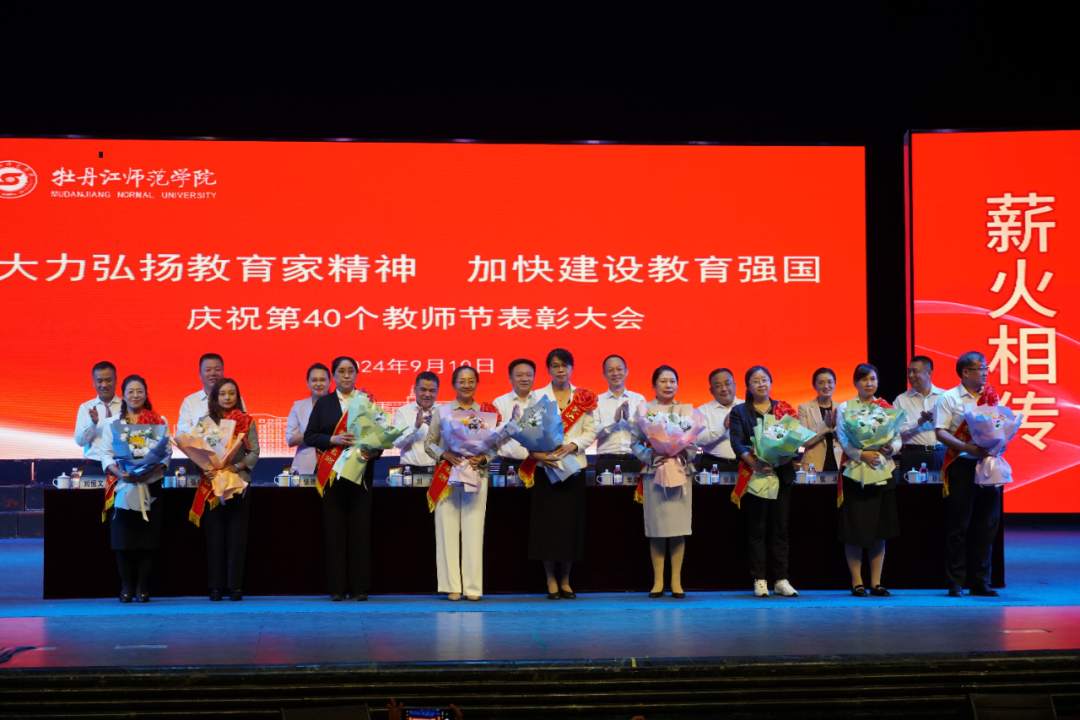 9月10日,牡丹江师范学院“庆祝第40个教师节暨先优表彰大会”在第一音乐厅举行。会议对文学院“省政府特殊津贴”“校优秀教育工作者”称号获得者綦中明院长、“黑龙江省模范教师”“黑龙江省教学名师”称号获得者李华教授进行了表彰。