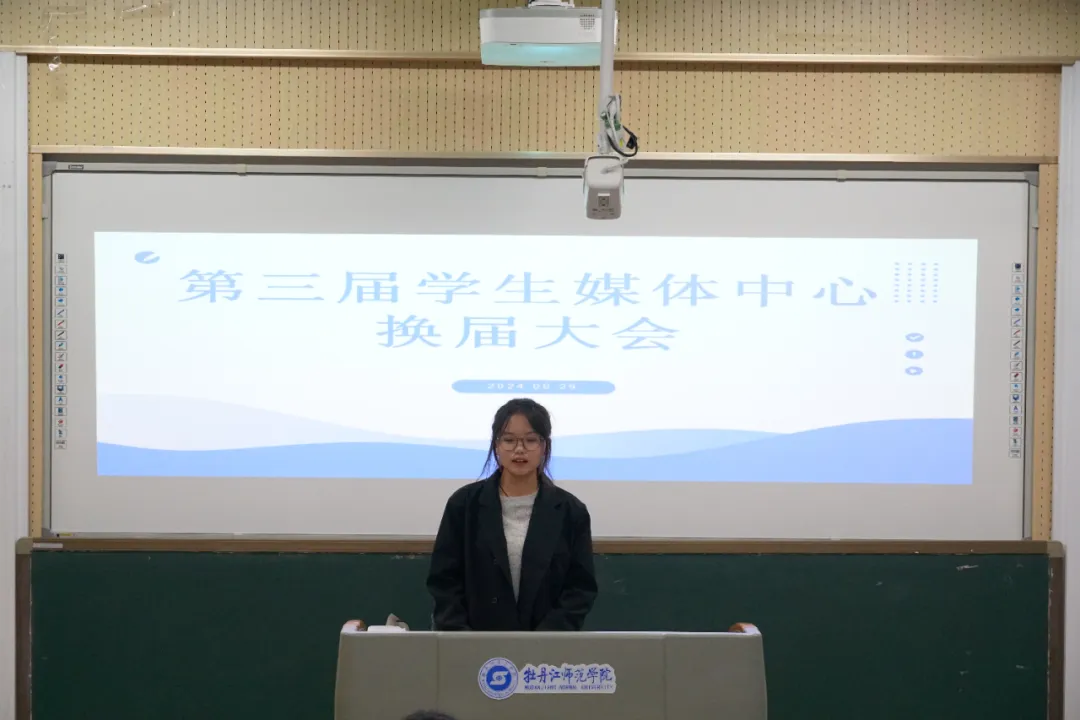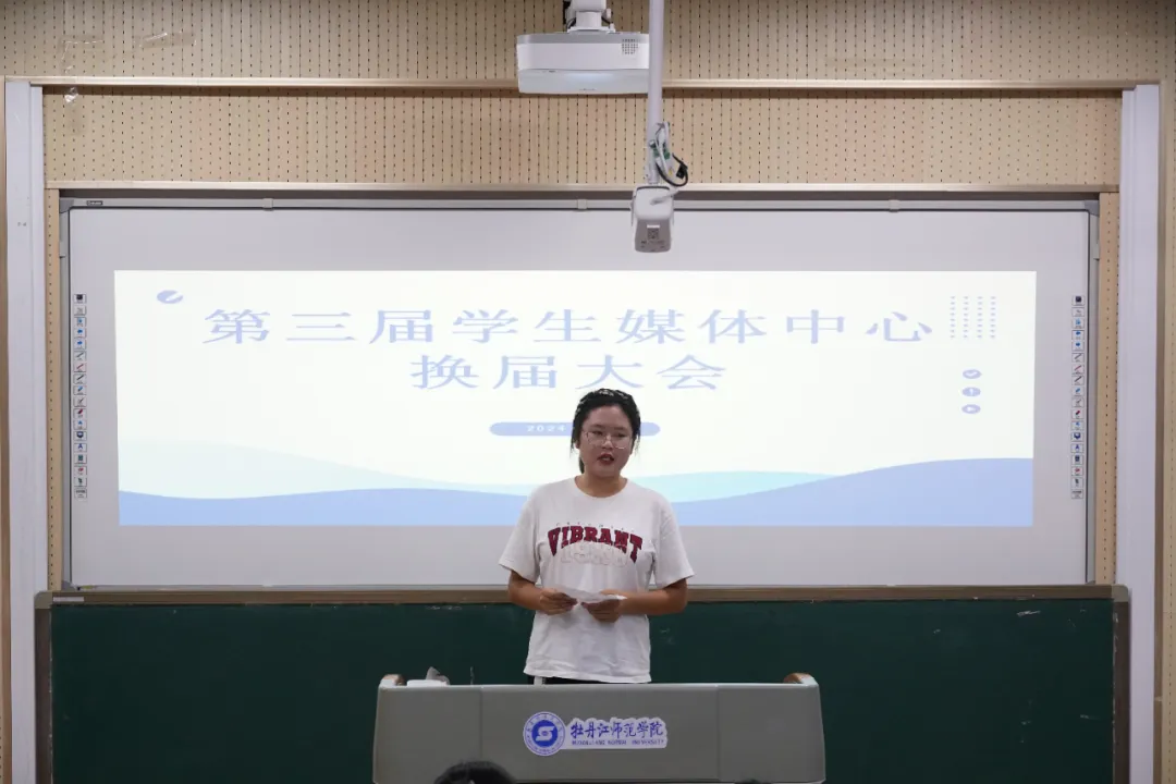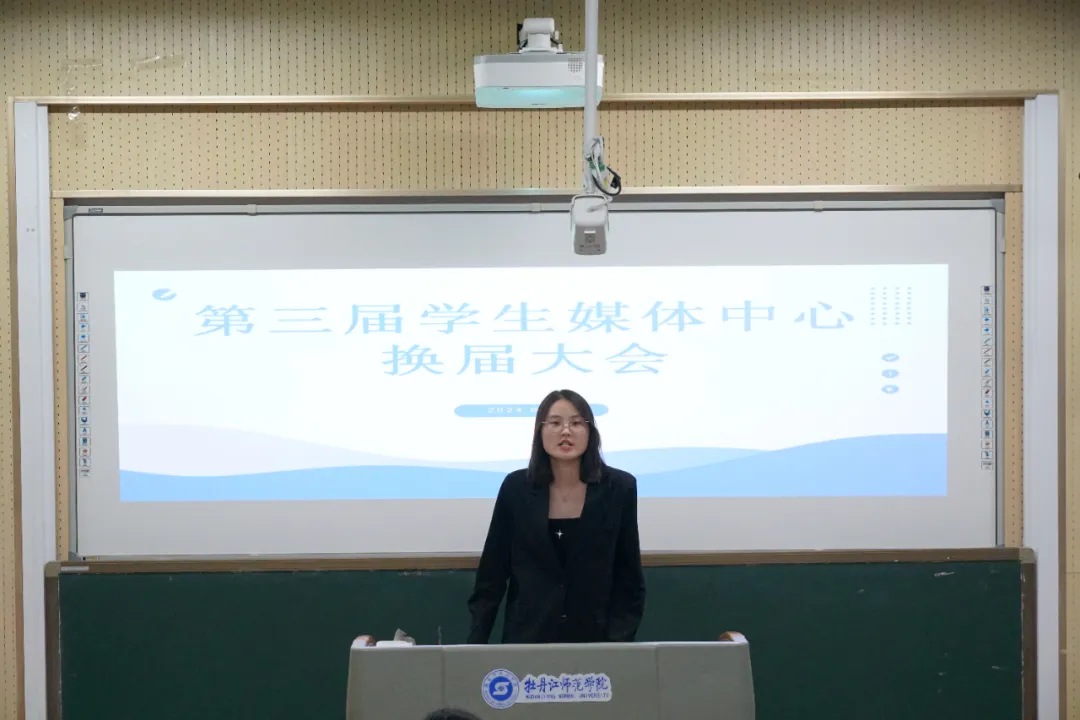 会议第三项议程,第三届学生媒体中心候选人进行竞选演讲。演讲内容主要从自我介绍、竞聘意向、竞聘优势、工作规划四个方面展开,充分展示了自己的才能与潜力,以及乐于奉献、服务同学、共创辉煌的决心与担当