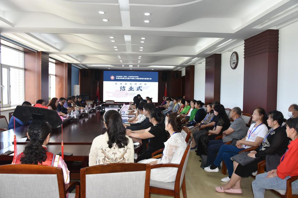 6月22日,由黑龙江省文旅厅主办、我校承办的中国非物质文化遗产传承人群研修研习培训计划“鱼皮技艺研修班”“鱼皮、桦树皮、麦秸剪贴技艺研修班”圆满结束。我校科研处处长金志民,省乡村教师教育发展学院(继续教育学院)书记王明莉、院长周传胜,项目负责人、首席专家,我校文学院宋娟教授,项目宣传策划,我校文学院宋明华教授及全体研修学员、项目管理团队、学术团队出席结业式。结业式由省乡村教师教育发展学院(继续教育学院)院长周传胜主持。