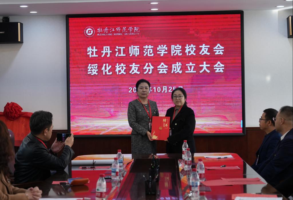 10月25日牡丹江师范学院校友会绥化校友分会成立大会在绥化召开。招生就业处处长孙蕾、西方语言学院院长、二级教授赵祥凤、校友总会代表、兄弟校友分会代表,绥化校友分会组织机构成员及校友代表参加会议。绥化校友分会秘书长李洋主持会议。