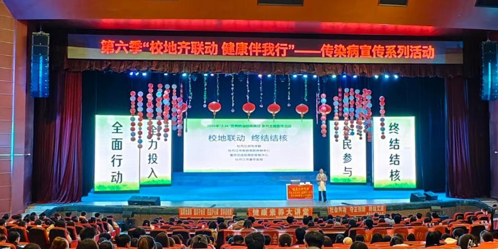 3月25日,我校在学校音乐厅成功举办第六季“校地齐联动 健康伴我行”校内首场传染病防治宣教活动。爱民区疾控中心副主任王路思、科长白光宇,牡丹江市疾控中心讲师唐新红,牡丹江市康安医院公卫中心副主任赵金媛等结合学生实际,分别就结核病防治、脂肪肝健康管理、艾滋病防控等知识以及学校结核病防控策略等内容进行了专业讲解。讲座内容翔实、贴近生活,既有科学严谨的医学知识,也有操作性强的预防指导,帮助师生进一步掌握了常见传染病的传播途径、预防措施及应急处置方法,增强了自我保护意识和能力。