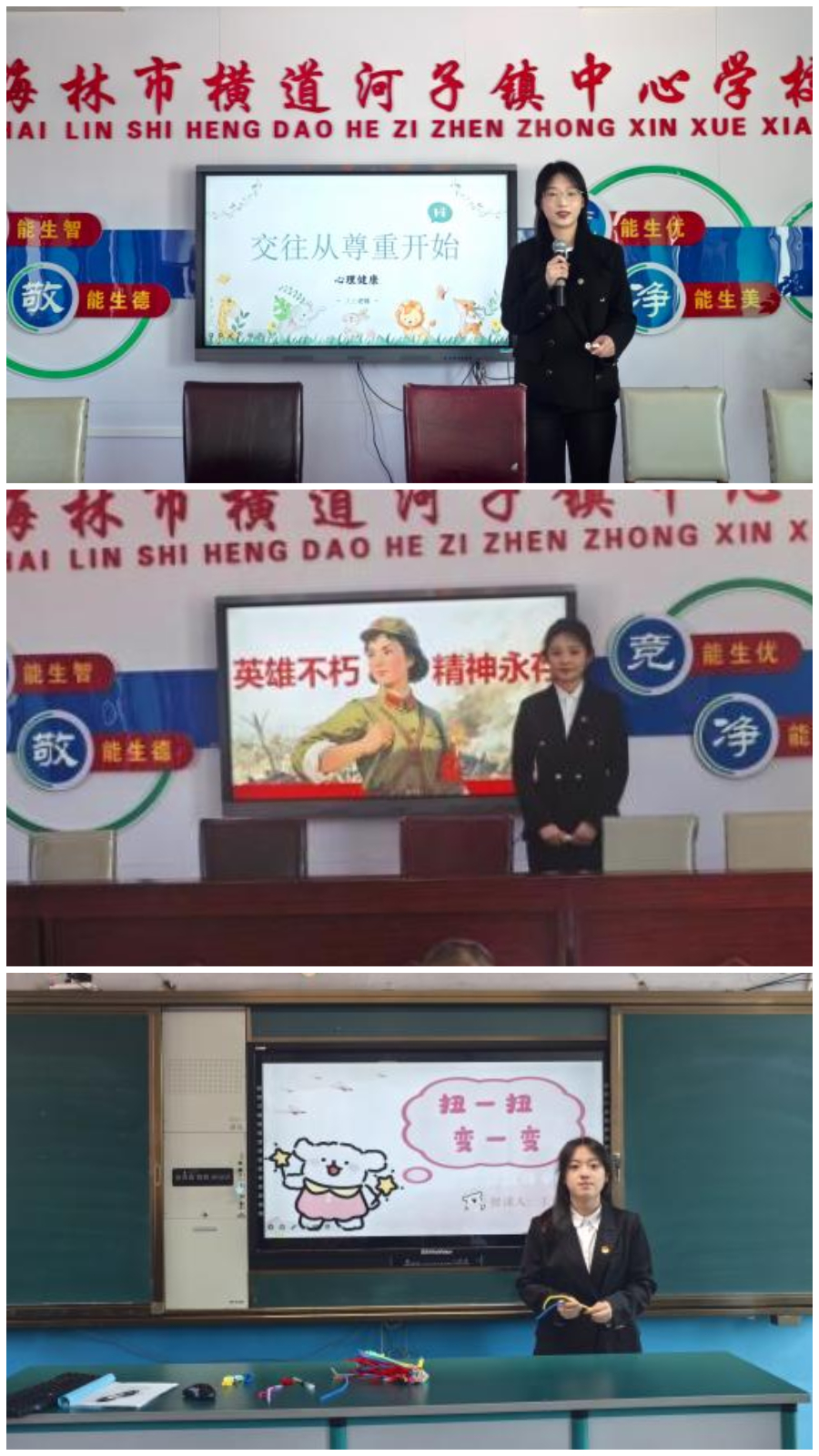 座谈结束后,西方语言学院师生为中心学校学生带来了三场精彩的特色志愿课。辅导员王泽宇以“交往从尊重开始”为主题开展心理健康教育,引导学生树立友善交往理念;学生志愿者秦诗淇讲述了抗日民族英雄赵一曼的英勇事迹,让红色基因在少年心中扎根;志愿者王若萌开设趣味手工课,带领同学们用扭扭棒创作作品,在动手实践中锻炼创新思维。课程兼具趣味性与教育性,深受孩子们喜爱。